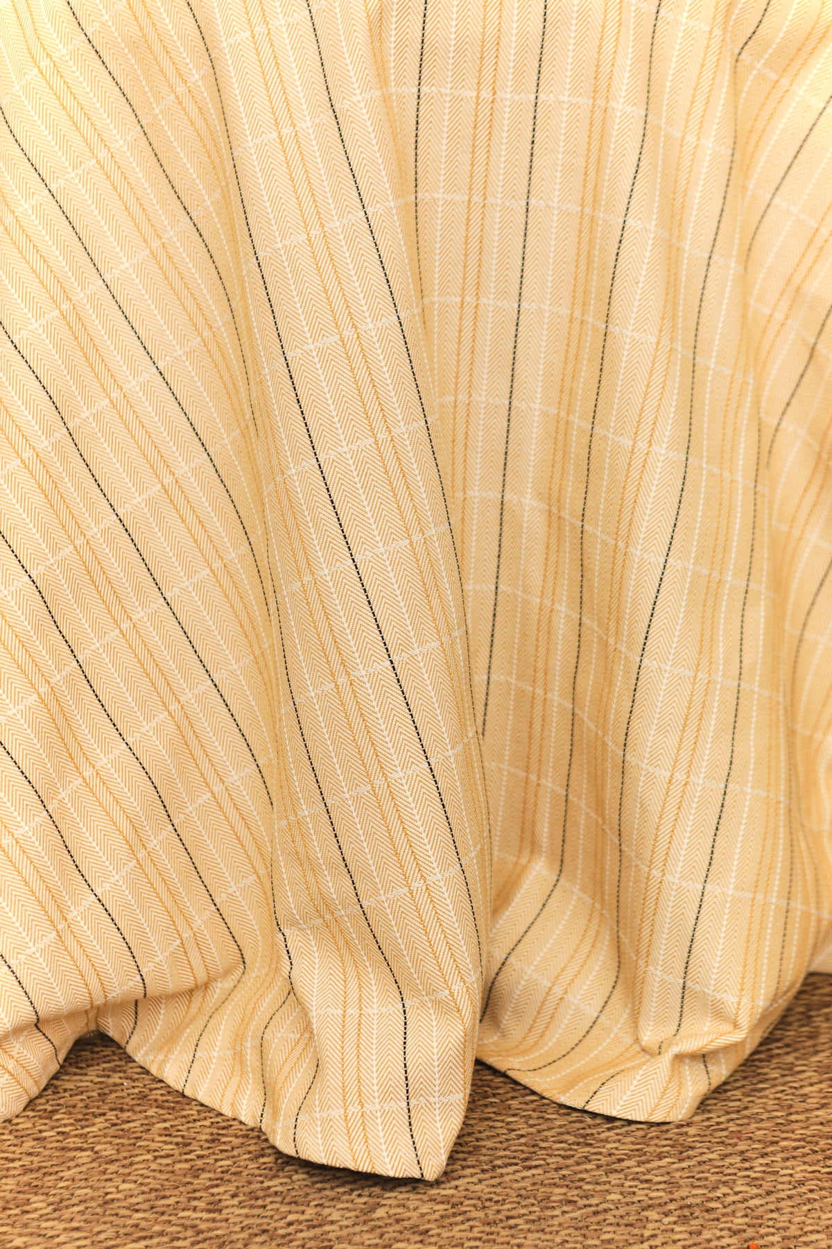 Por eso hemos diseñado estas faldas con mimo y con un tejido que combina elegancia, tradición y calidez: una espiga en tono amarillo mostaza con finas líneas negras que le dan profundidad y carácter.