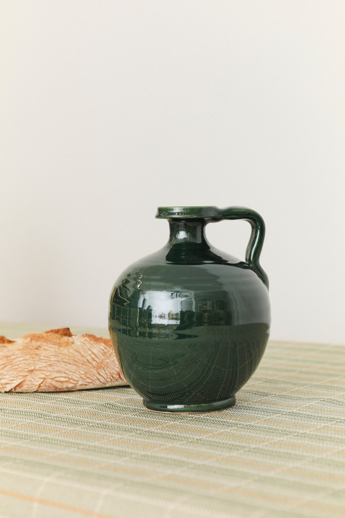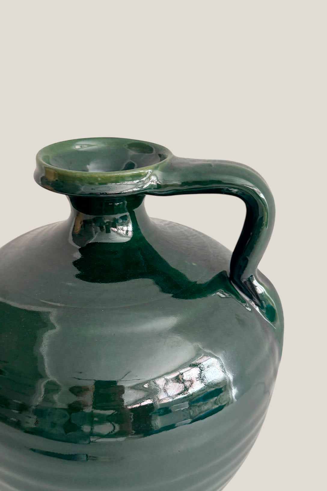 Una pieza que recoge la esencia de la cerámica tradicional andaluza con un giro de color profundo y elegante. Este jarrón está elaborado a mano en La Rambla (Córdoba), con el característico esmalte brillante de la serie Pérula en un verde botella casi hipnótico. Su forma clásica con asa y cuello ancho lo hace ideal como centro de mesa, florero o simplemente como objeto decorativo con presencia.