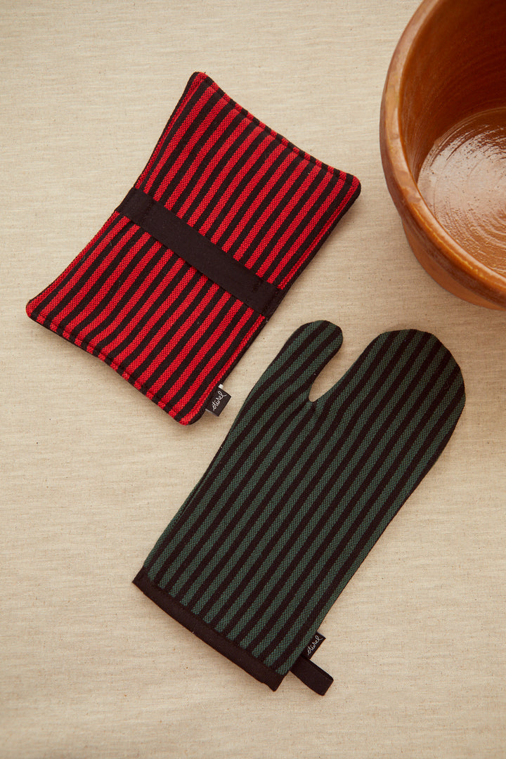 Este set de horno es ideal para no quemarse y para darle un toque bonito a la decoración de la cocina. Hecho a mano con tejido español de alta calidad, ¡este set es imprescindible para cualquier amante de la cocina! Algo tan funcional también puede ser bonito y decorativo.