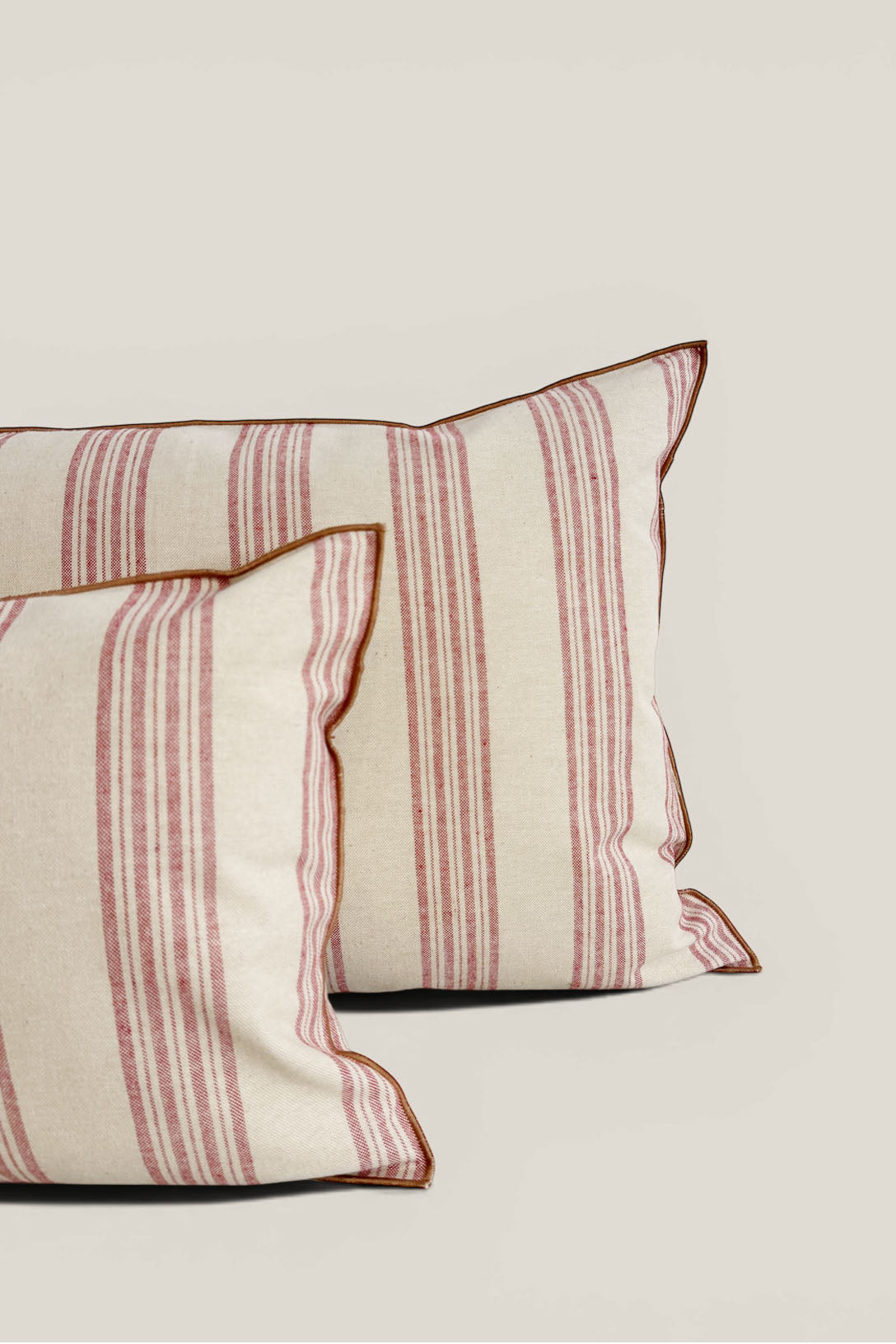 Los cojines de la colección Quijote son el detalle perfecto para aportar calidez y estilo a cualquier espacio. Su tejido de rayas suaves y el delicado repulgo en color verde crean un conjunto elegante que combina fácilmente con otras piezas de la colección.