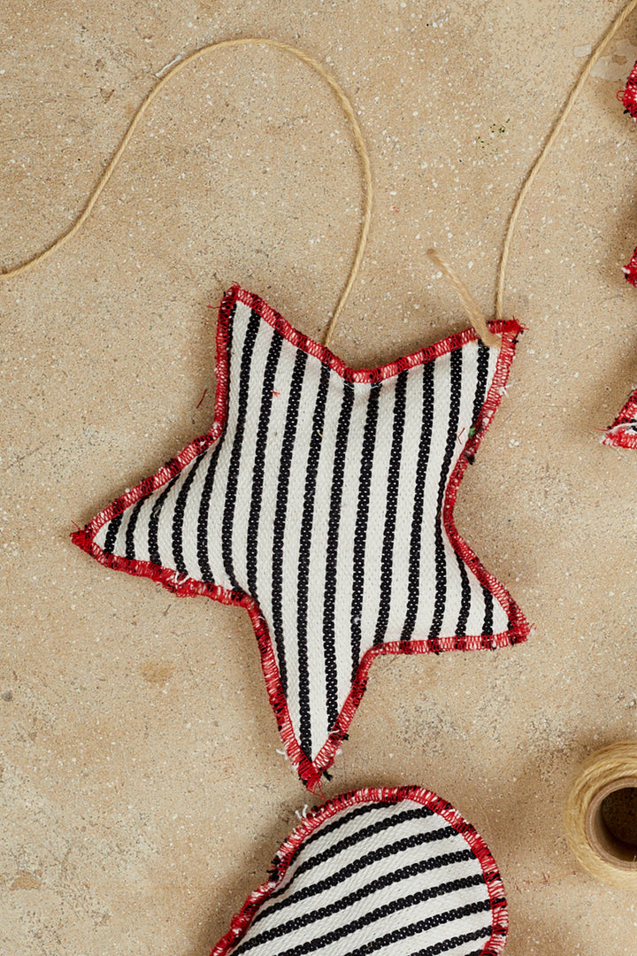 ¡Añade un toque exclusivo a tu árbol de Navidad! Nuestro adorno de Navidad hecho a mano con tejido tradicional, le aportará un estilo único gracias a sus detalles en rojo y la cuerda para colgarlo seguramente. ¡Añada este hermoso y artesanal adorno a su árbol esta Navidad.