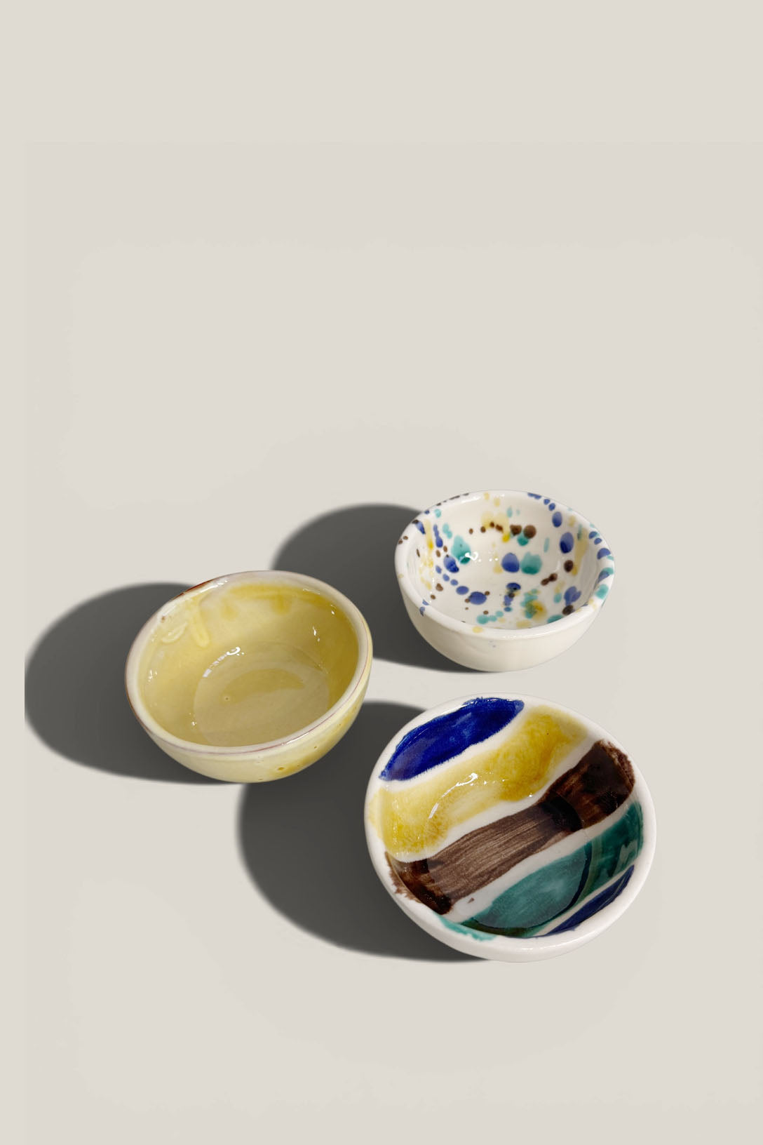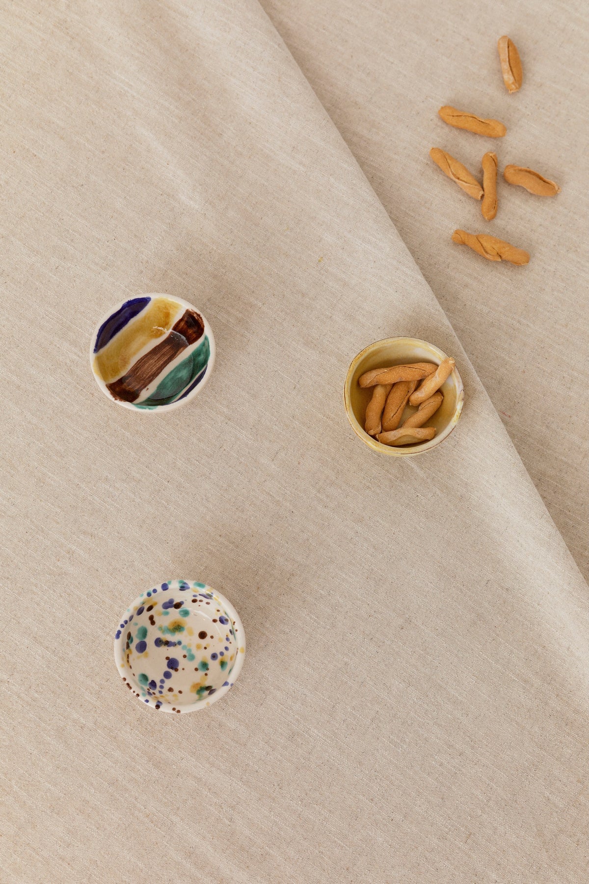 Nuestros salseritos de Níjar son pequeños cuencos artesanales perfectos para vestir la mesa con encanto y personalidad. Ideales para servir aceitunas, frutos secos, salsas o pequeños aperitivos, aportan volumen, color y juego visual a cualquier composición.