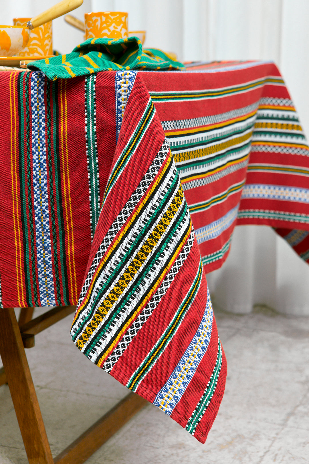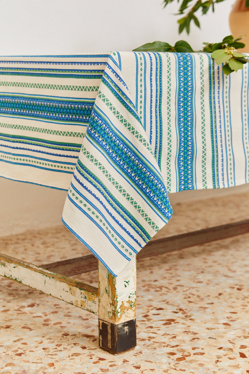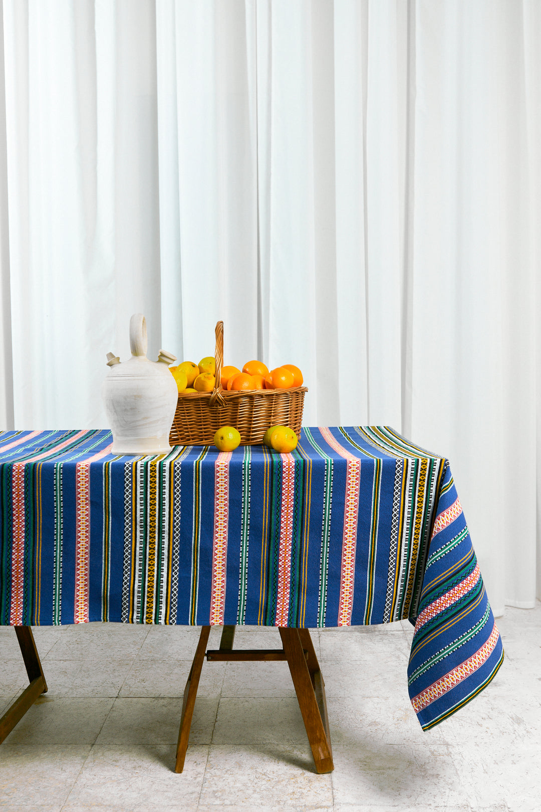 Nuestros manteles están confeccionados íntegra y artesanalmente en nuestro taller de Madrid. Para ello, y mediante técnicas de costura típicas, usamos tejidos tradicionales de diferentes puntos de la geografía popular española.
