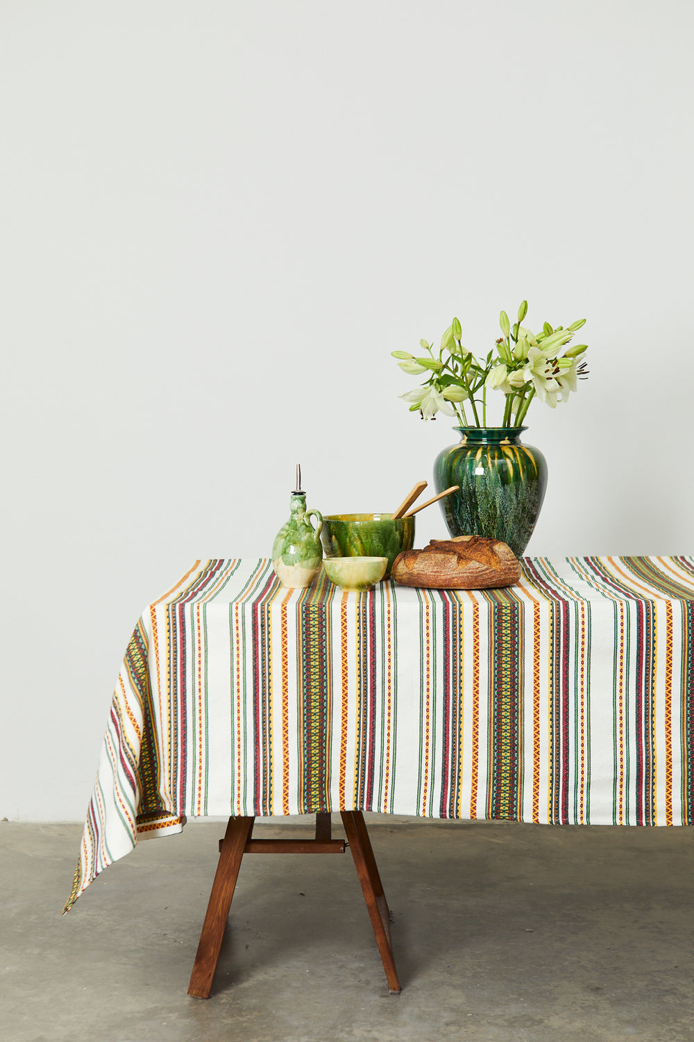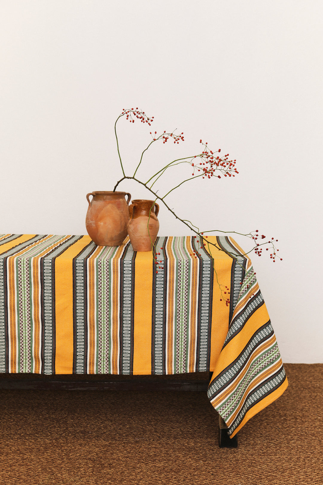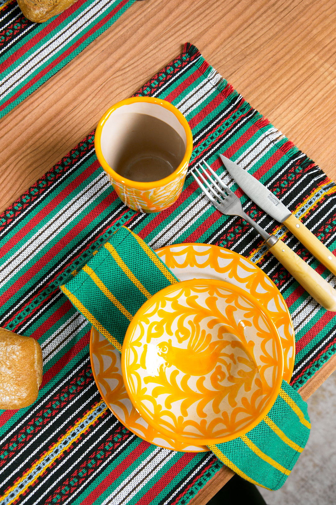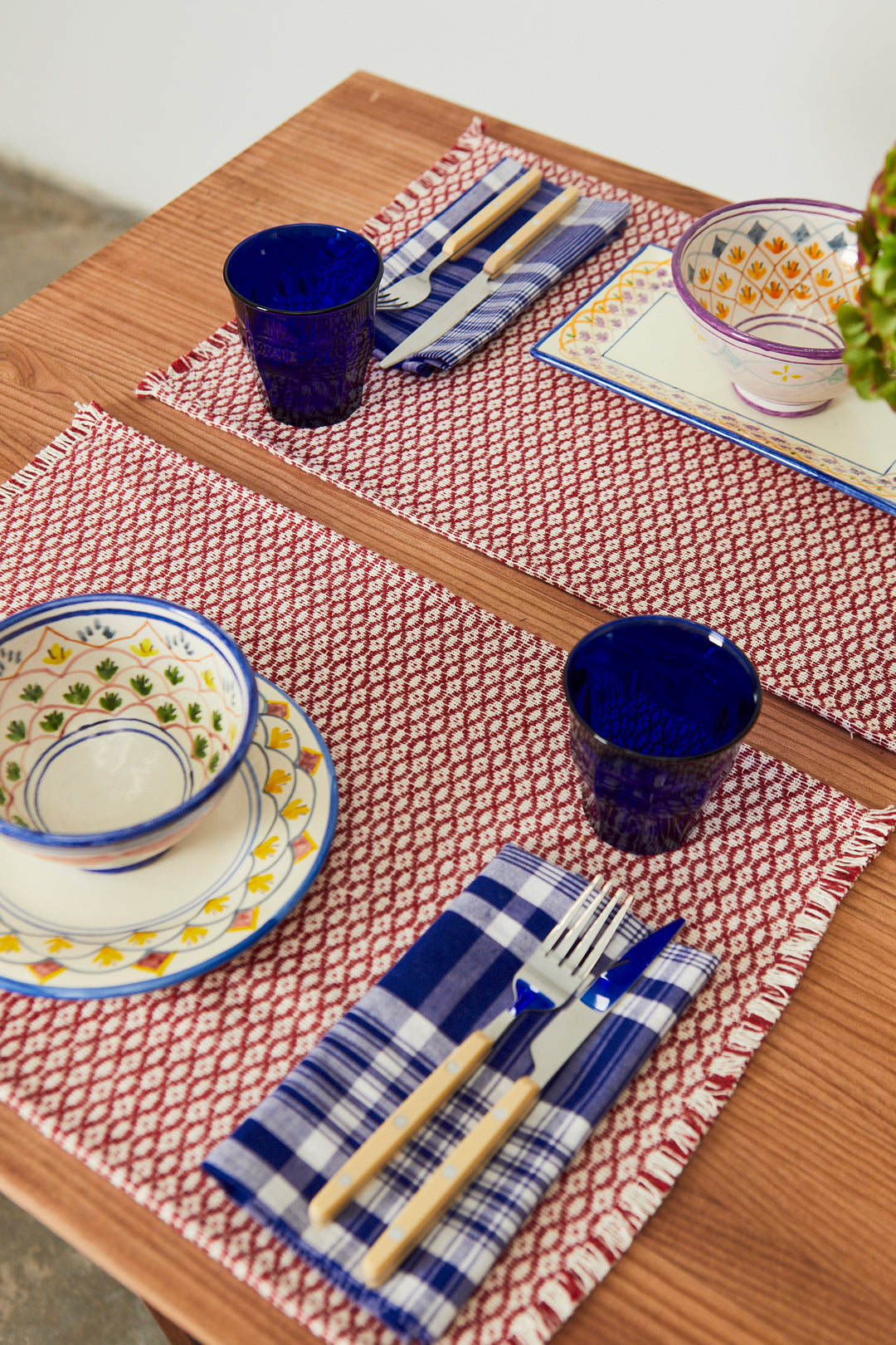 Nuestros manteles están confeccionados íntegra y artesanalmente en nuestro taller de Madrid. Para ello, y mediante técnicas de costura típicas, usamos tejidos tradicionales de diferentes puntos de la geografía popular española.