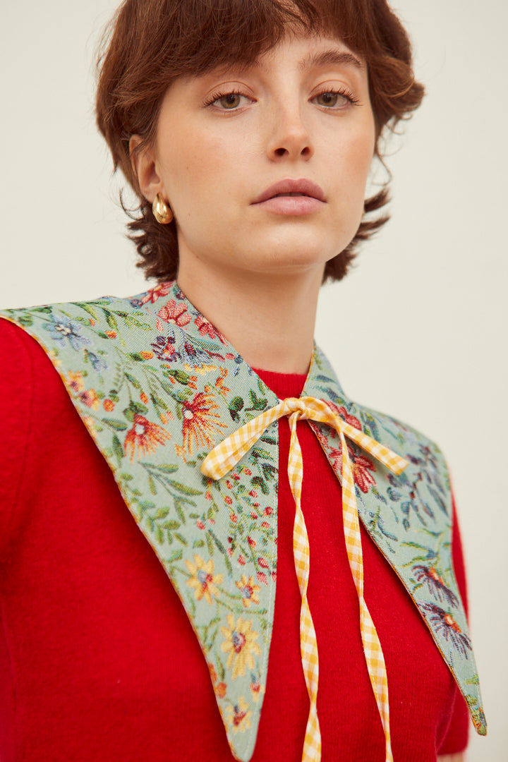 Cuello tejido jacquard flores azaleas celeste