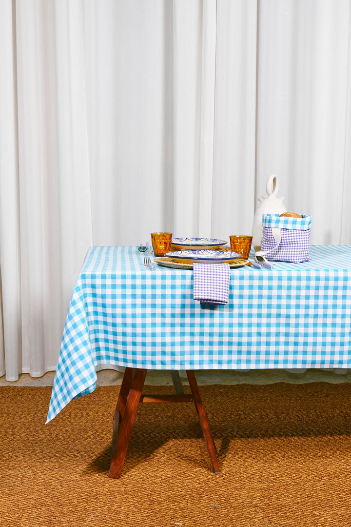 Mantel 140cm x 240cm cuadros vichy azul celeste cerca