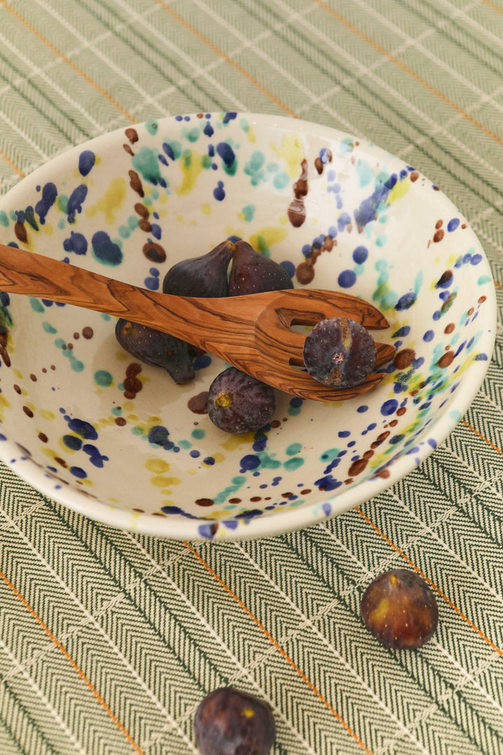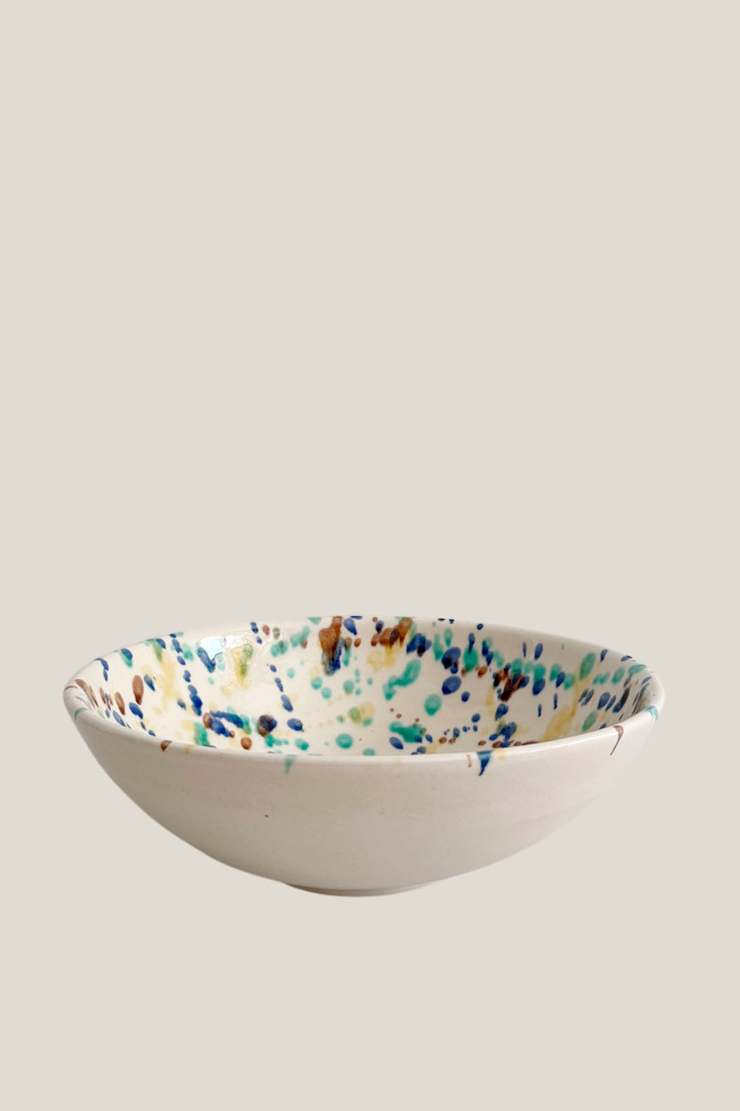 Esta fuente parece una fiesta. Llena de salpicaduras de color, con esa alegría tan propia de la cerámica de Níjar, ha sido hecha y pintada a mano una a una, con todo el saber de la tradición almeriense.