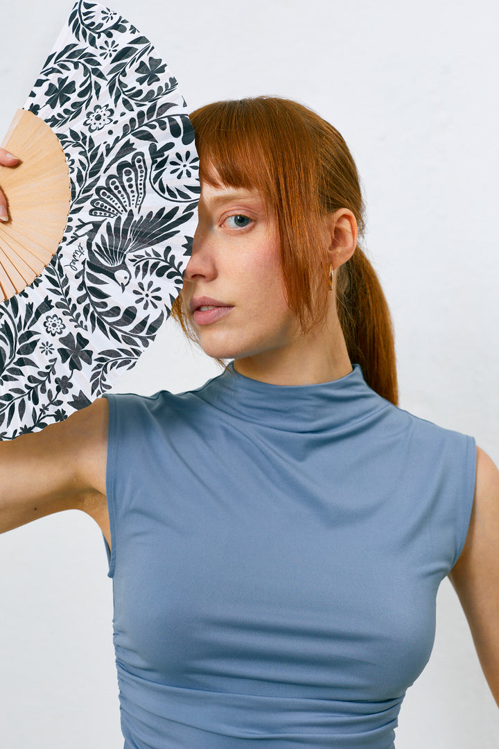 ¡Revive tus días de verano con el abanico folklore amarillo! Comfort y tradición se unen con un toque moderno de folklore y el encanto de la cultura española. ¡Siente la frescura y la pasión en tus manos!