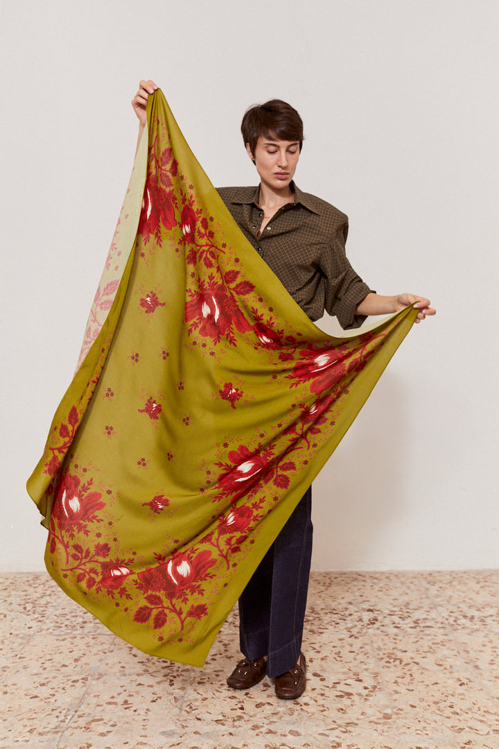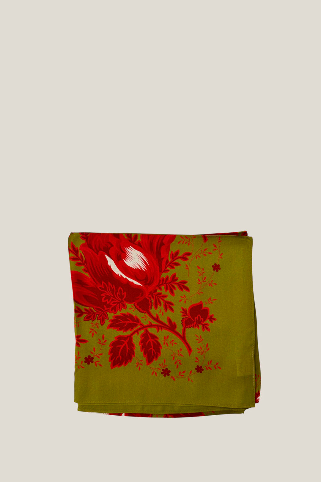 Un pañuelo con historia… y mucho carácter. Inspirado en los clásicos pañuelos de indiana del siglo XVIII, este diseño combina un fondo verde oliva con flores en granate. Un guiño a lo tradicional, con ese aire fresco que combina igual de bien con un traje regional que con un look diario.