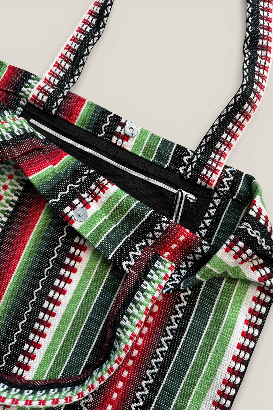 - Bolsillo interior con cremallera en color negro.