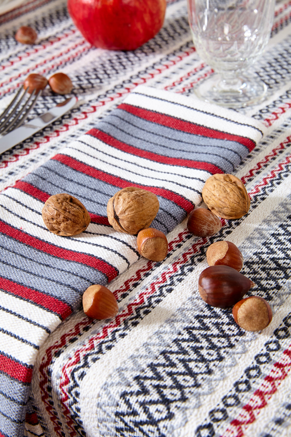En Eturel contamos con manteles confeccionados artesanalmente en nuestro taller de Madrid. Para ello, y mediante técnicas de costura típicas, usamos tejidos tradicionales de diferentes puntos de la geografía popular española.