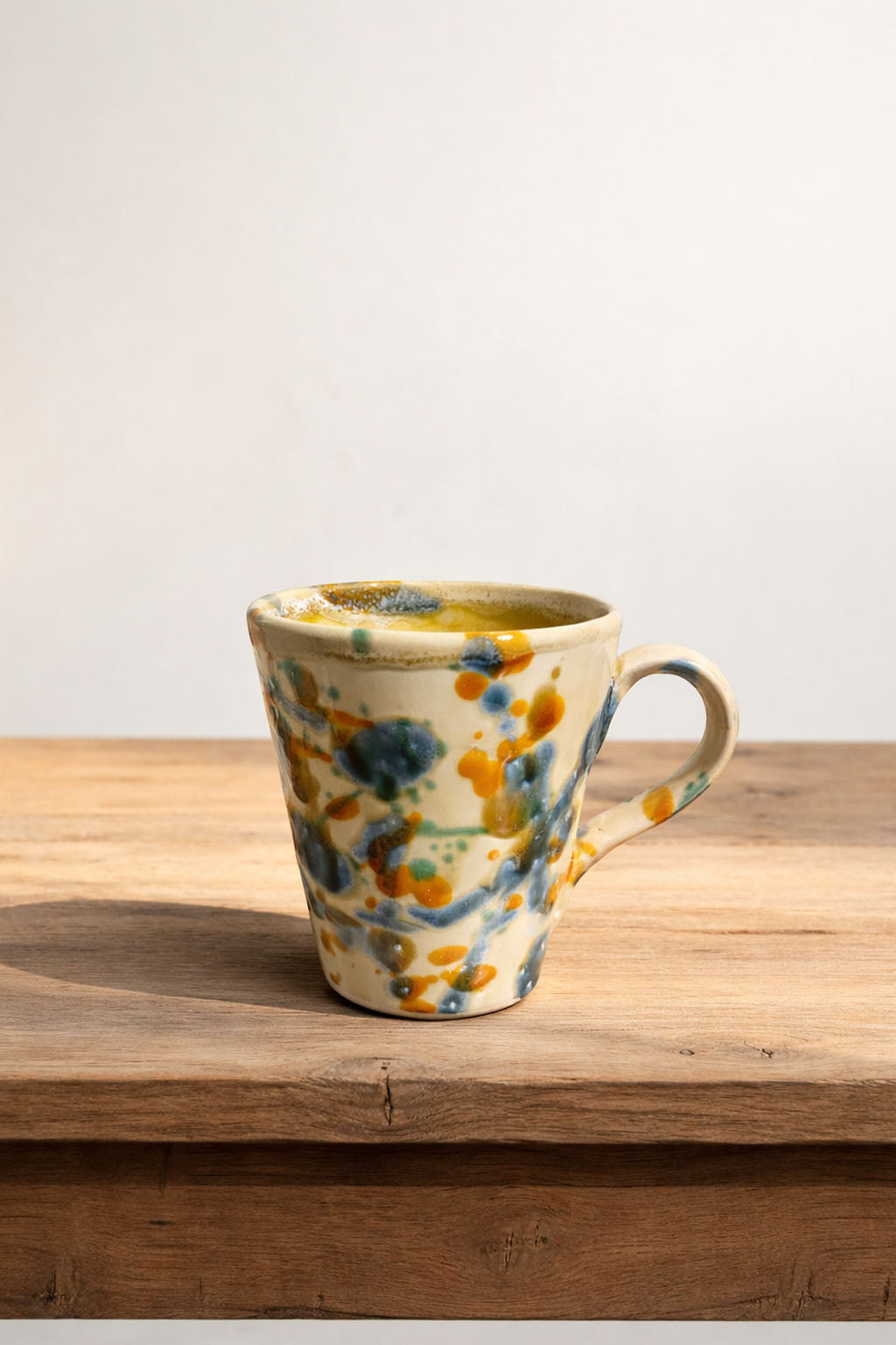 Cada pieza se modela y se pinta a mano en España, utilizando la misma técnica artesanal de salpicado y pincelada libre. Los colores vivos y los pigmentos se mezclan de forma espontánea sobre el esmalte, haciendo que no existan dos tazas iguales.