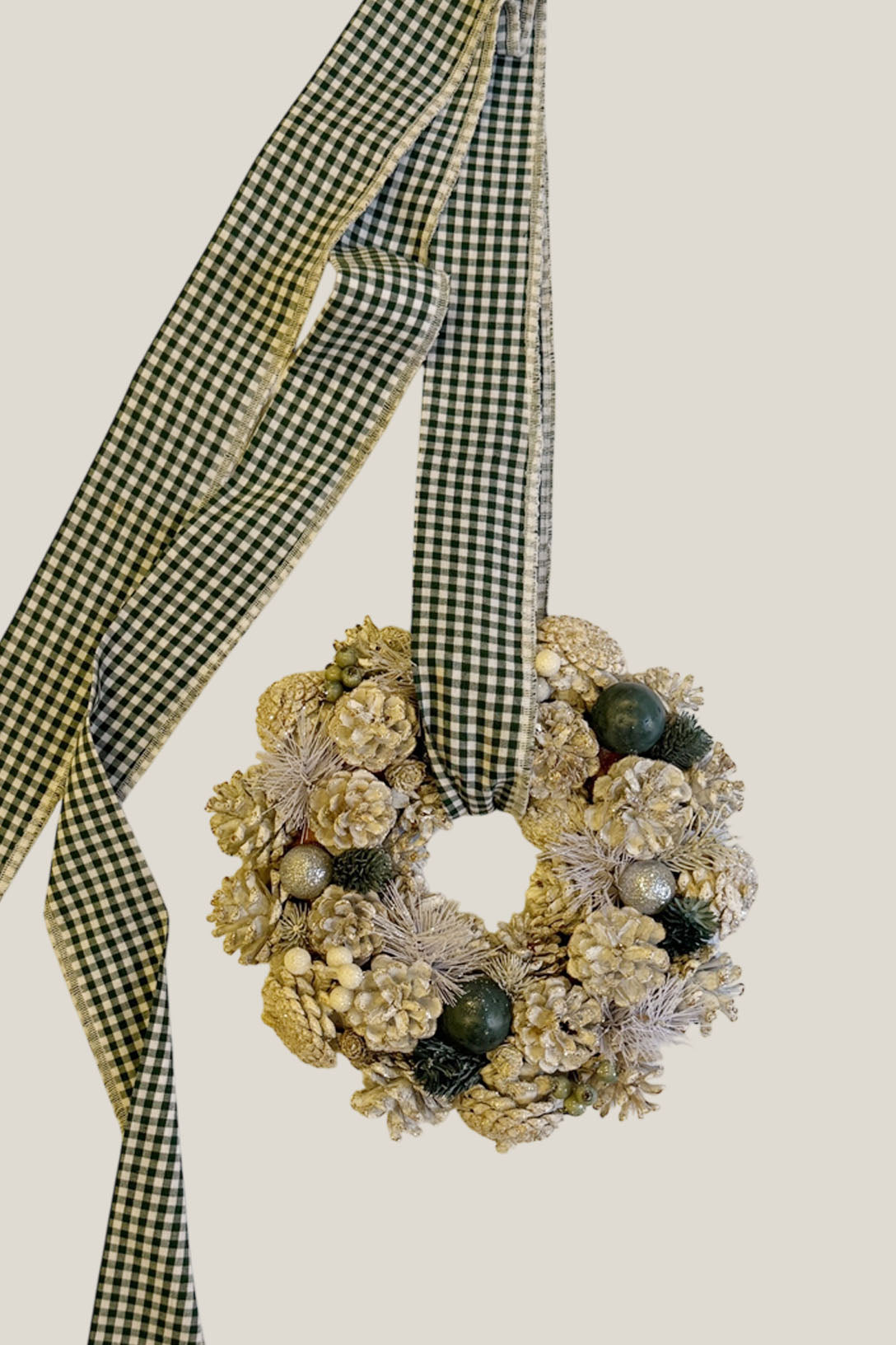 Incluye un lazo vichy precioso que puedes elegir en el color que más te guste, para colgarla y personalizarla a tu estilo. Ese detalle transforma la corona en una pieza aún más cálida y única, con un punto tradicional que encaja de maravilla en cualquier casa.