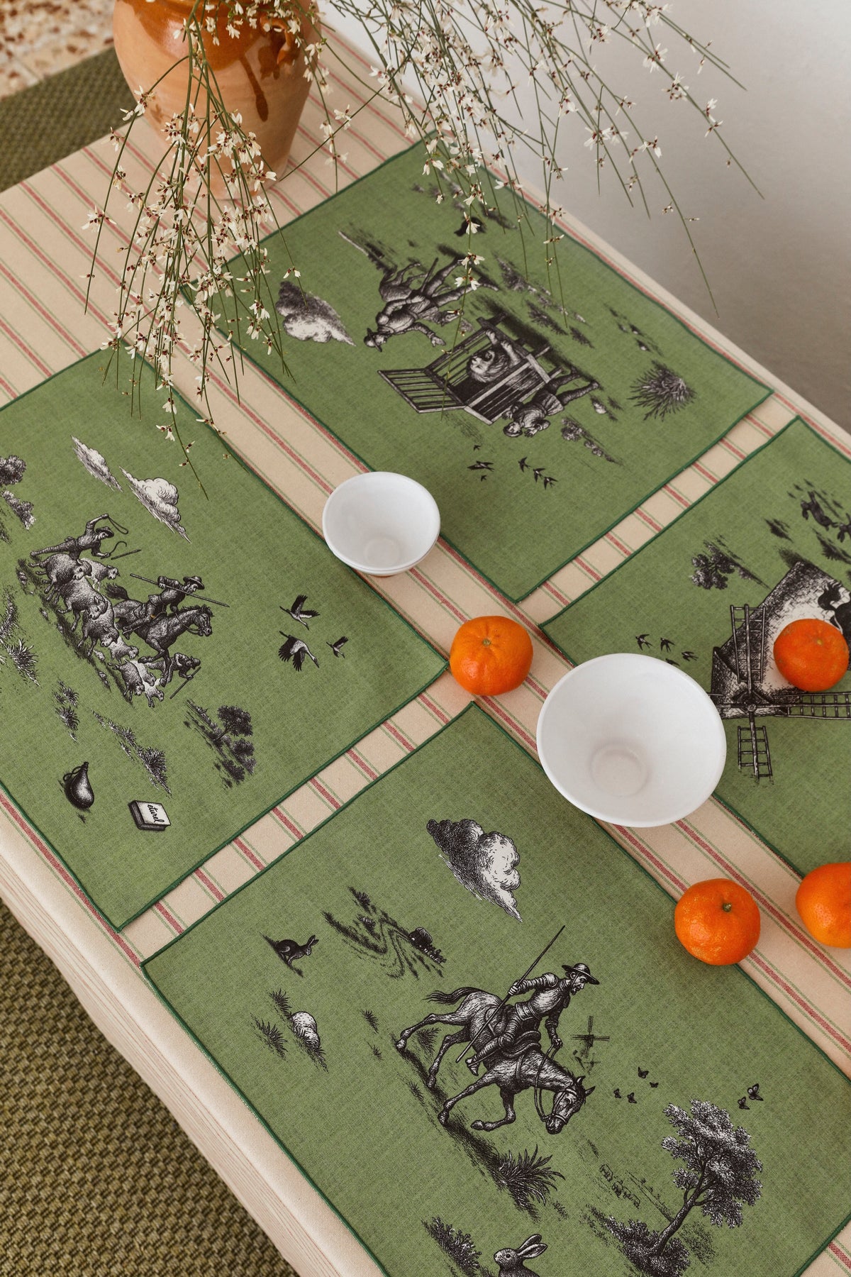 Los packs de manteles individuales de la colección Quijote reúnen algunos de los estampados más representativos de la colección, inspirados en las escenas y paisajes más emblemáticos de Don Quijote de la Mancha. Cada diseño recrea momentos y elementos del imaginario de la obra, convirtiendo la mesa en un pequeño homenaje a la historia y a la tradición manchega.
