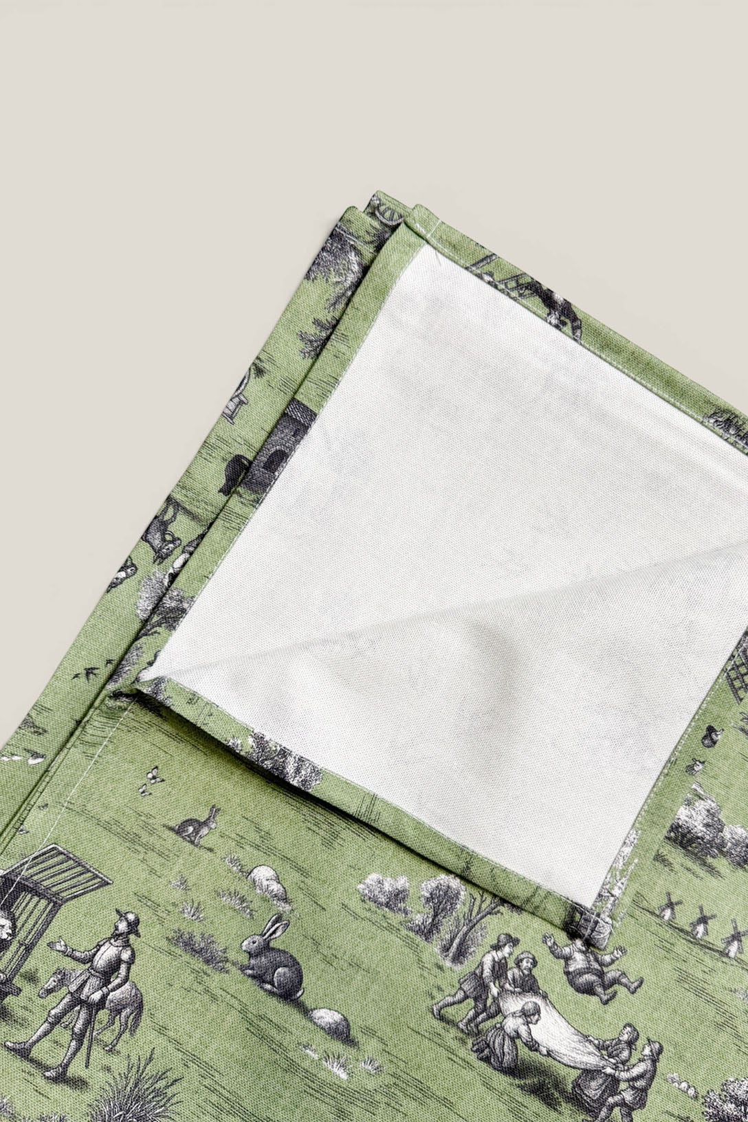 El mantel grande de la colección Quijote es una de las piezas principales de la colección. Su elegante estampado, inspirado en las escenas y paisajes del universo de Don Quijote de la Mancha, aporta carácter y personalidad a cualquier mesa.