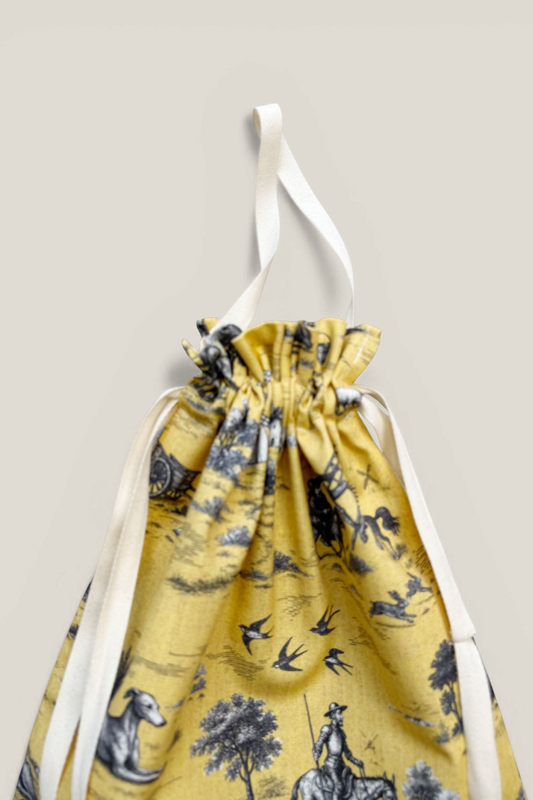 La bolsa panera de la colección Quijote está pensada para acompañarte en el día a día con una mezcla perfecta de funcionalidad y estilo. Su diseño práctico permite transportar cómodamente el pan de barra, manteniéndolo protegido y bien presentado. Además, gracias a sus asas cortas, puede colgarse fácilmente en la cocina, convirtiéndose también en un elemento decorativo que aporta un toque cálido y tradicional.