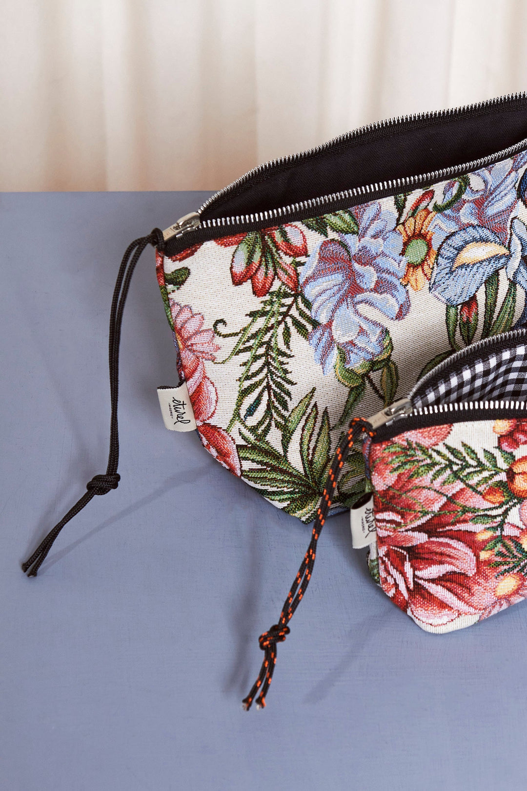 Neceser y estuche tejido jacquard flores rojas lejos manique