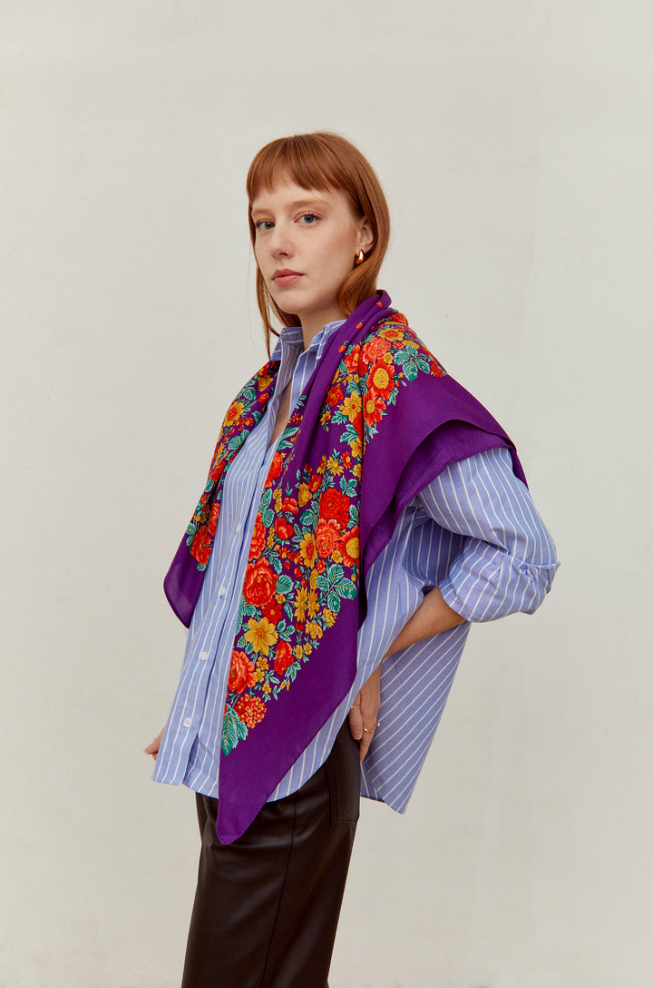 ¡Eleva tu look con nuestro pañuelo portugués morado! Este pañuelo, parte del traje regional español, es bonito y de un color morado vivo que combinará perfectamente con cualquier outfit, dándole el toque de poder que nunca sobra. Además, ¡puedes jugar con sus muchas formas de ponerlo para crear un look único y personalizado!