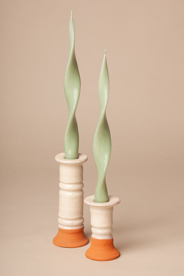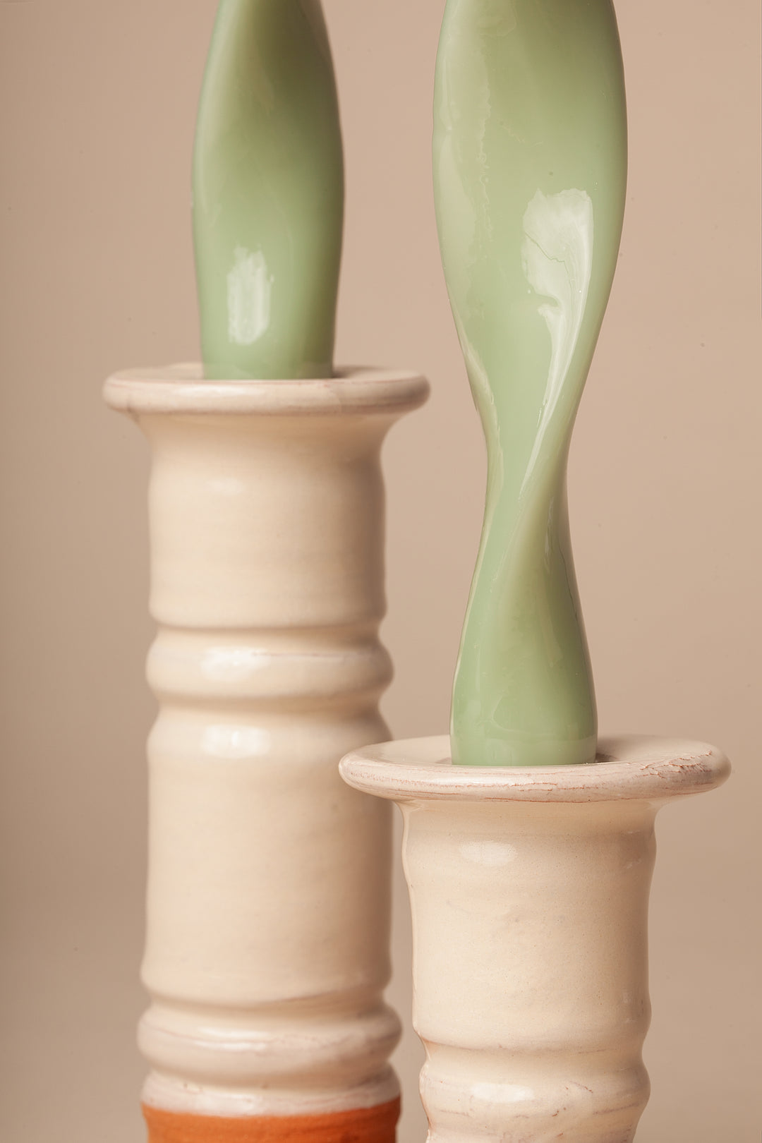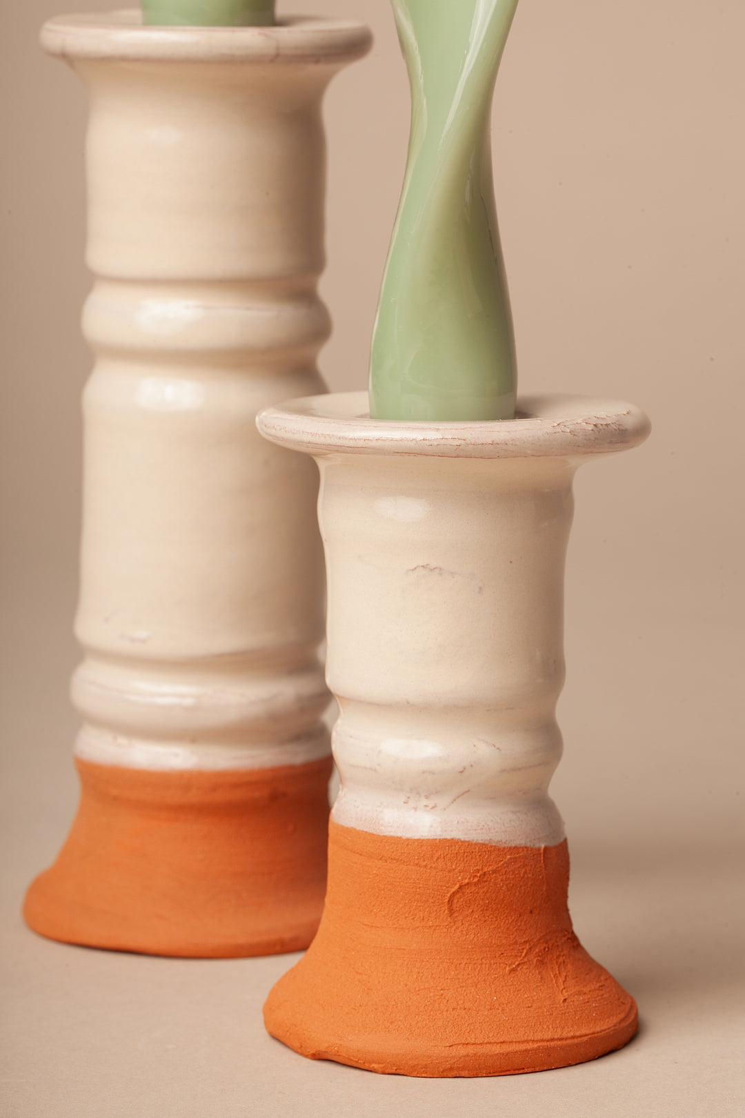 Estos dos candelabros de barro esmaltados en blanco son la mezcla perfecta entre lo rústico y lo elegante. Hechos a mano con cuidado y dedicación, cada pieza refleja la artesanía tradicional que da vida a objetos únicos. Su esmalte blanco brillante aporta frescura y luminosidad, mientras que su diseño simple y sofisticado los convierte en el complemento ideal para cualquier espacio. Perfectos para crear ambientes cálidos y acogedores, estos candelabros transforman cualquier rincón en un lugar lleno de estilo y serenidad.