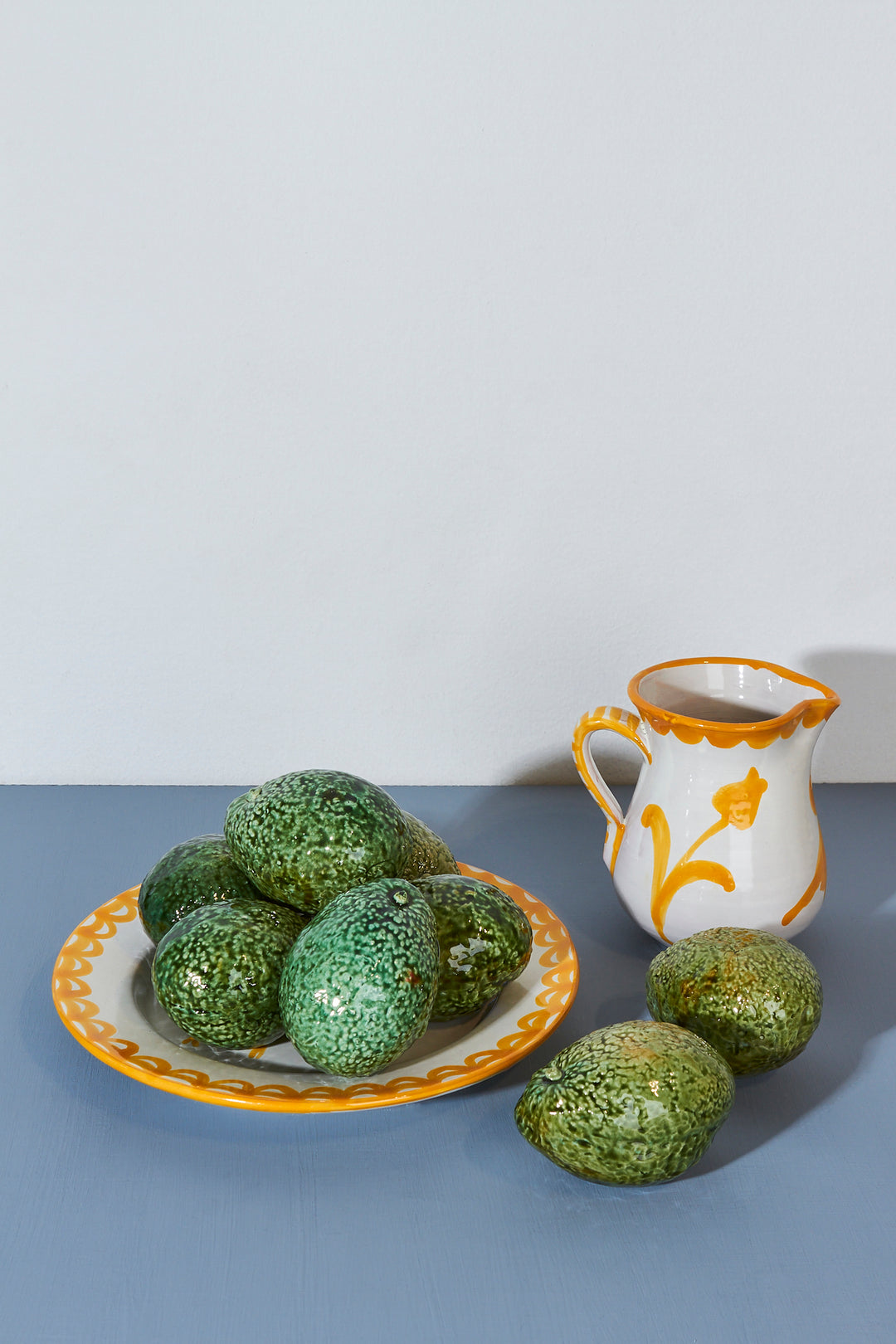 Aguacate réplica de cerámica esmaltado detalle bodegon