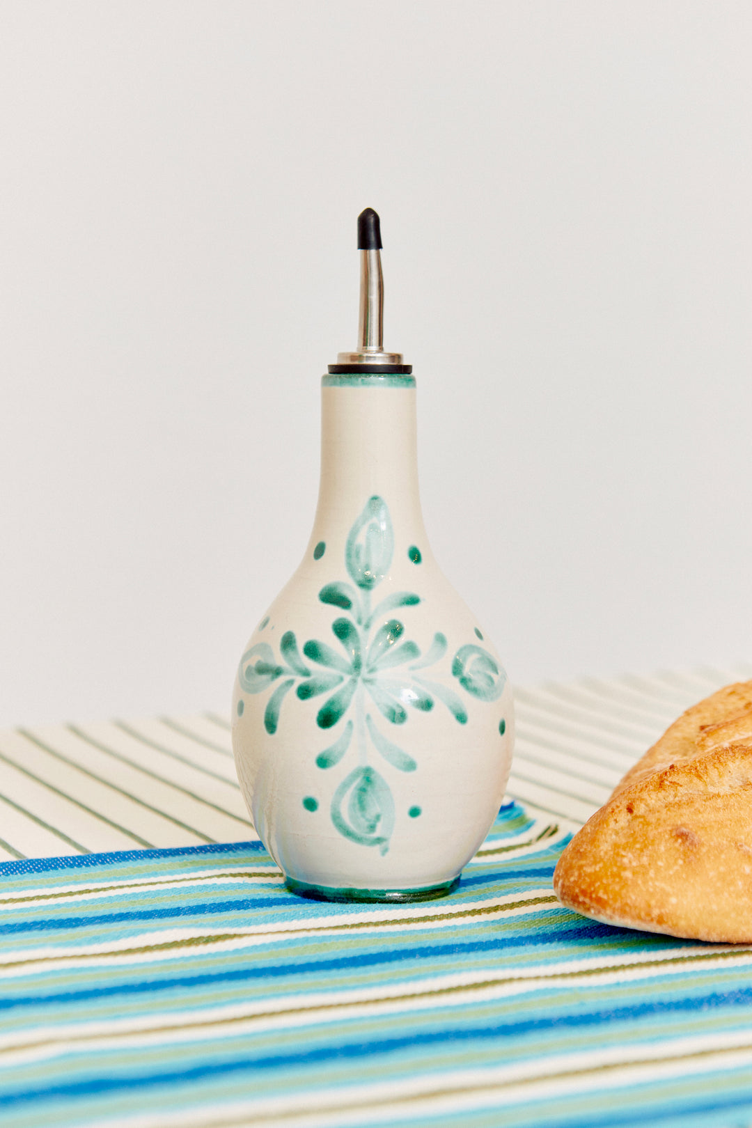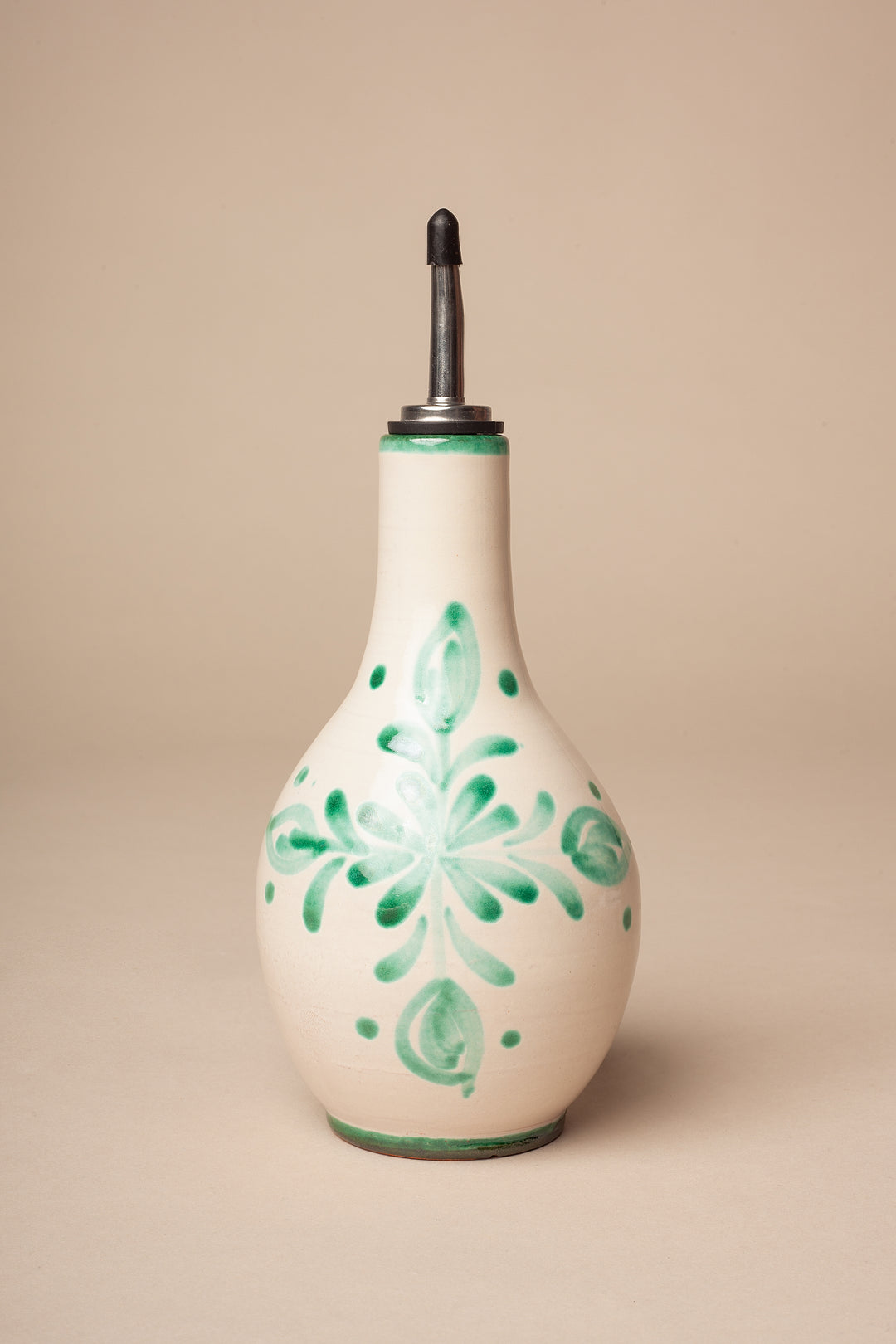 Nuestra aceitera verde de la colección Granaíno es pura esencia artesanal. Hecha a mano por alfareros españoles, cada pieza es única, con esas pequeñas variaciones que solo lo auténtico puede ofrecer. Su esmalte verde intenso y su forma tradicional la convierten en un imprescindible para los amantes del buen aceite y del diseño con alma. Funcional y decorativa, mantiene el aceite protegido mientras aporta carácter a tu mesa o cocina. Porque lo bonito, cuando es de verdad, se nota.