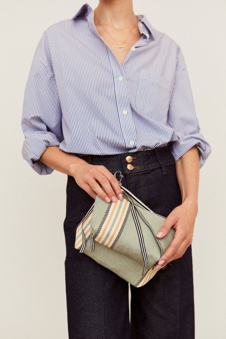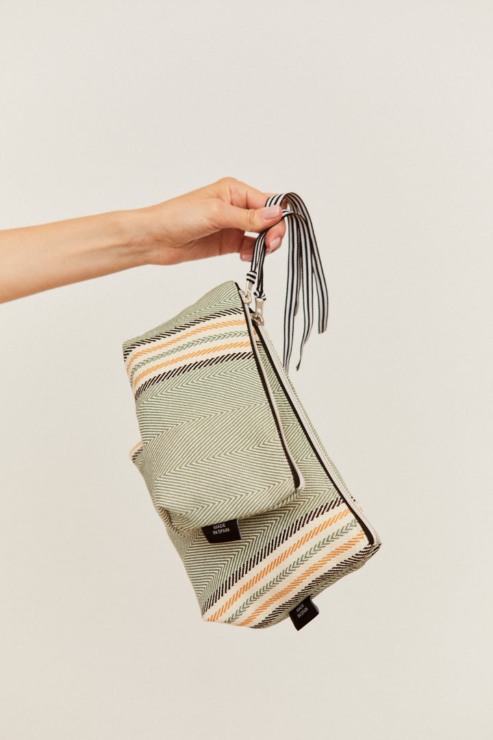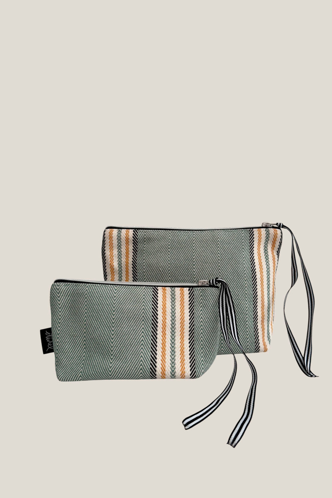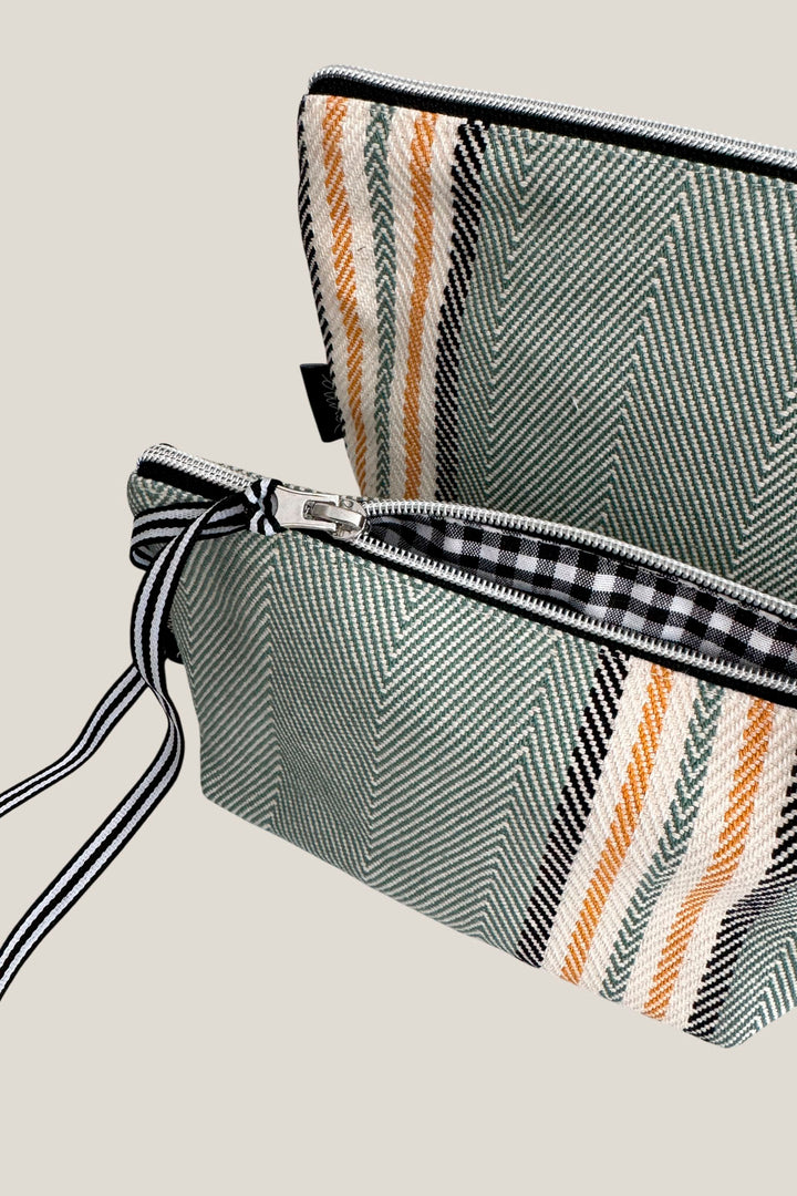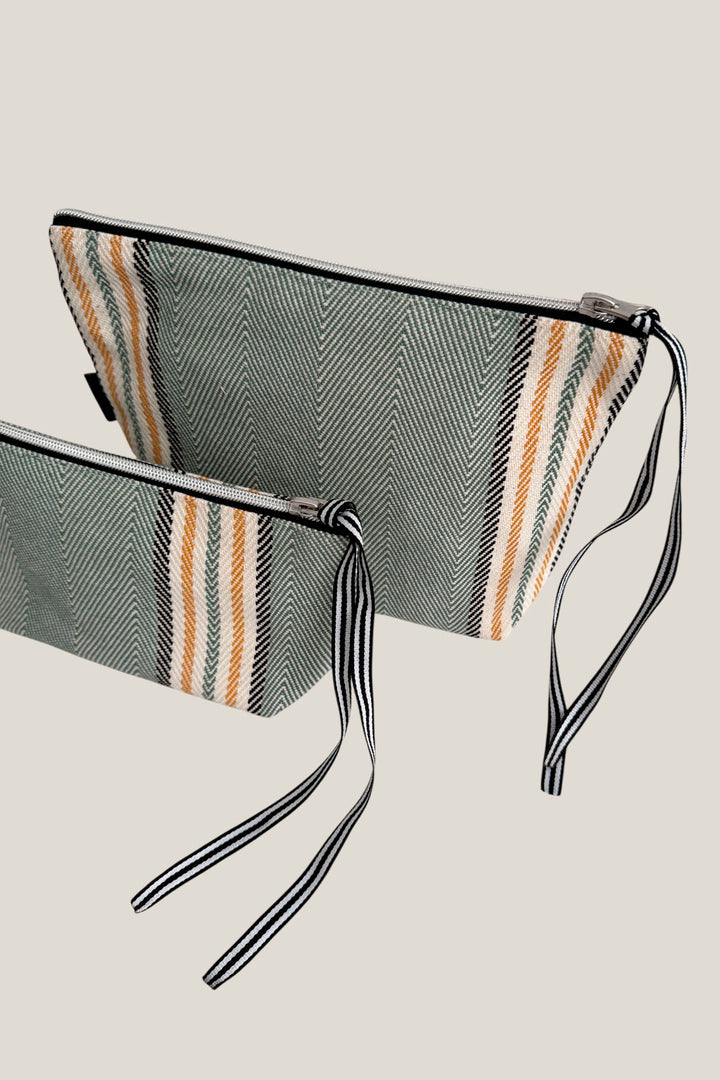 ¡Llévate un pedacito de historia contigo! Nuestro neceser/estuche de sarga de burgos en verde es práctico, bonito y con mucho carácter. Inspirado en los sacos de antaño que se usaban en el campo, y fabricado artesanalmente, combina lo útil con lo castizo como solo Eturel sabe hacerlo.
